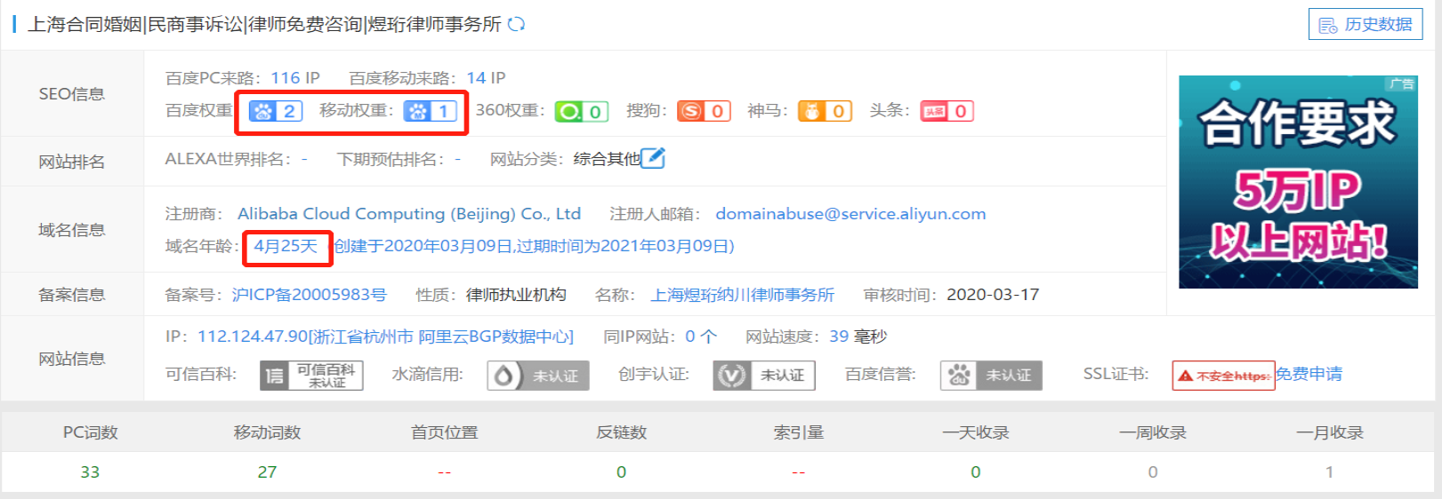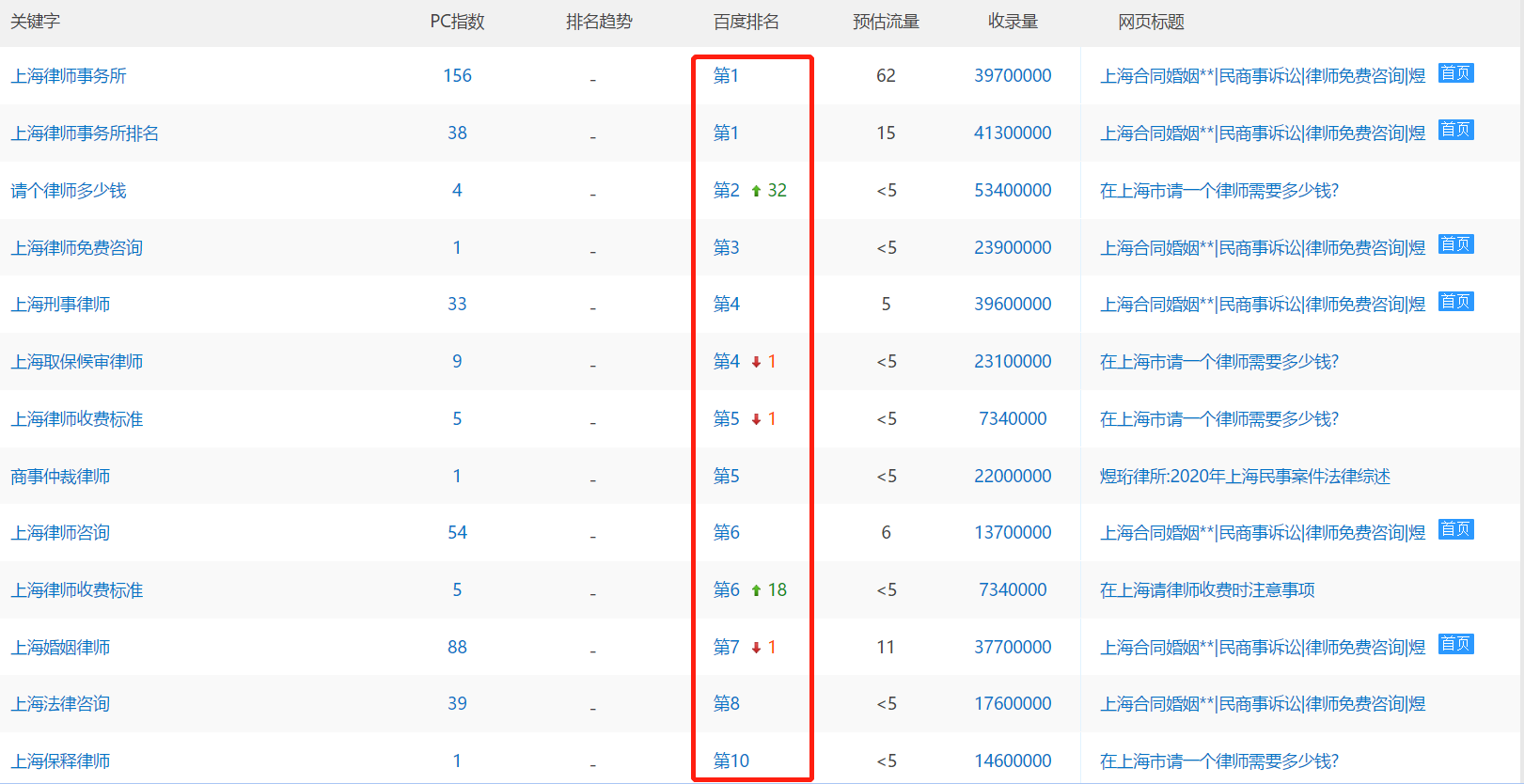 通过我们两个月努力,对于客户半年不到的新网站进行优化,目前网站权重已经到达2了,关键词在首页的排名逐渐上升增多,流量逐渐增大。